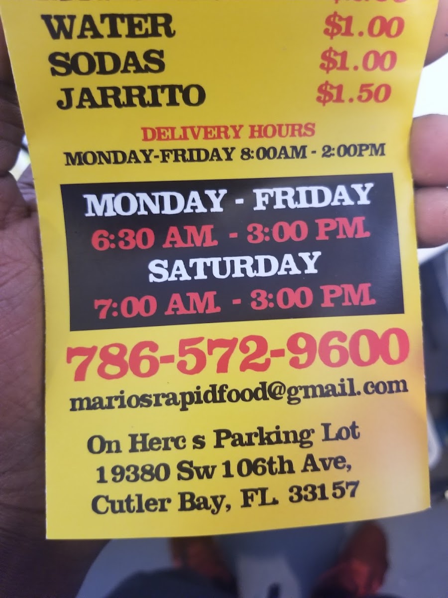Welcome to Mario's Rapid Food LLC, a vibrant cafe located at 19380 SW 106th Ave, Cutler Bay, FL 33157. This popular eatery has quickly become a local favorite for those who crave delicious, quick bites without compromising on quality. With a menu that offers a delightful fusion of flavors, Mario's guarantees a gratifying experience for anyone who steps through its doors.